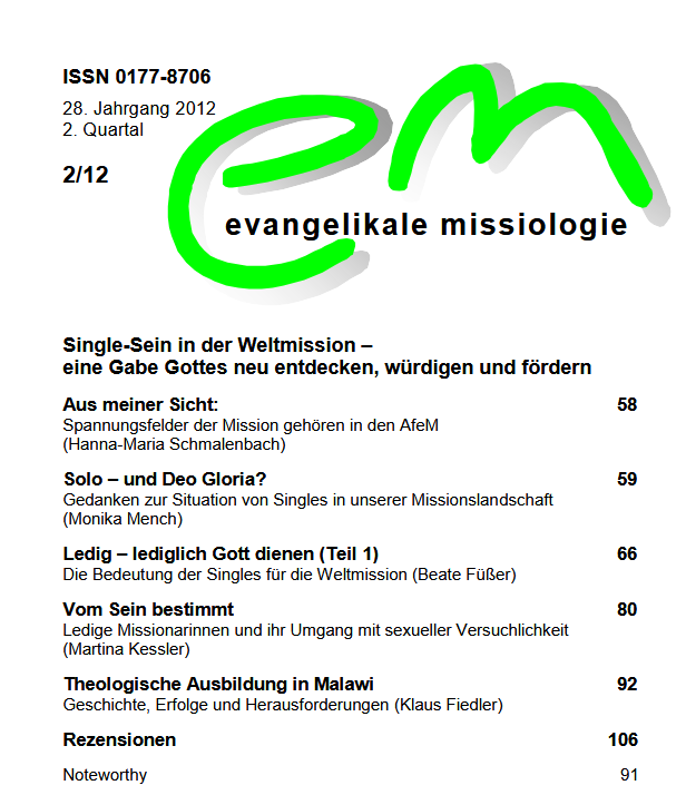 - Wir bieten Hilfe beim Schreiben von Artikeln und die Veröffentlichung in unserer Zeitschrift evangelische missiologie.
